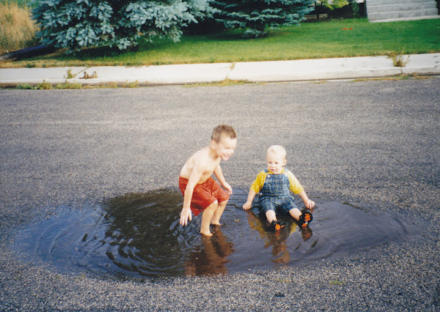Here's my boys on their corner about two blocks down from the cemetery.